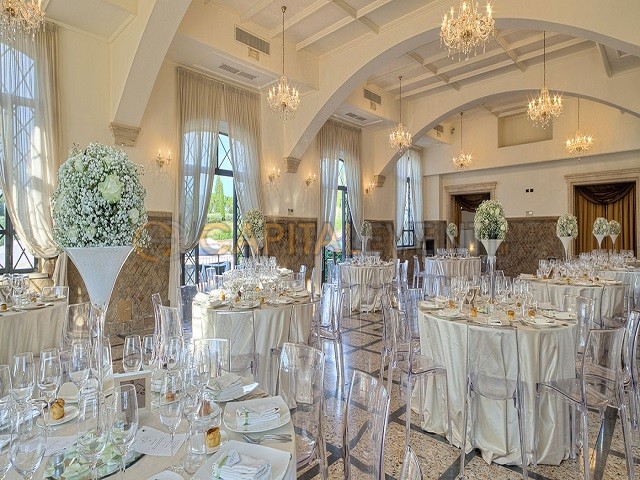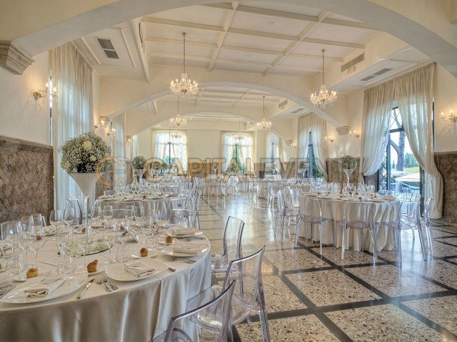 Gli spazi che caratterizzano la location sono molto belli e raffinati. La Villa dispone di due sale perfette per eventi di vario genere ovvero feste di matrimonio, showroom, meeting, mostre e feste. Una è la sala del ‘700 all’interno della quale poter organizzare un buffet e una cena e accogliere fino ad un massimo di 100 persone. L’altra sala è invece l’antico salone all’interno del quale poter organizzare un buffet per 230 ospiti oppure una cena con posti a sedere per un totale di massimo 160 invitati. Questa bellissima sala gode di luce naturale grazie alla presenza di ampie vetrate ad arco con vista sul giardino.