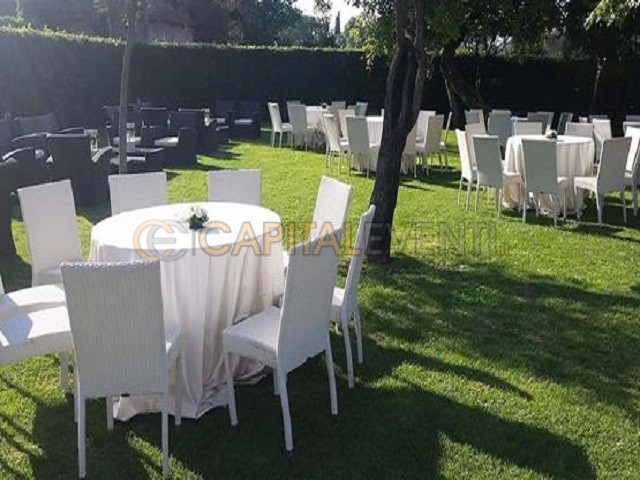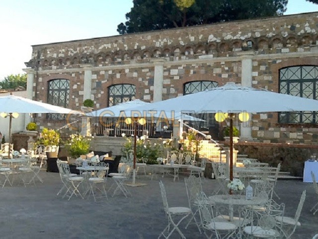 A rendere tale spazio ancora più bello e particolare sono i tanti ombrelloni e gazebo presenti ma anche tavolini e salottini per godere di momenti di assoluto relax. Presso tale spazio esterno della Villa sarà possibile organizzare delle cene ma anche dei pranzi o buffet ed accogliere fino a 300 persone. Sono inoltre presenti un parcheggio interno e diversi spazi per la musica.